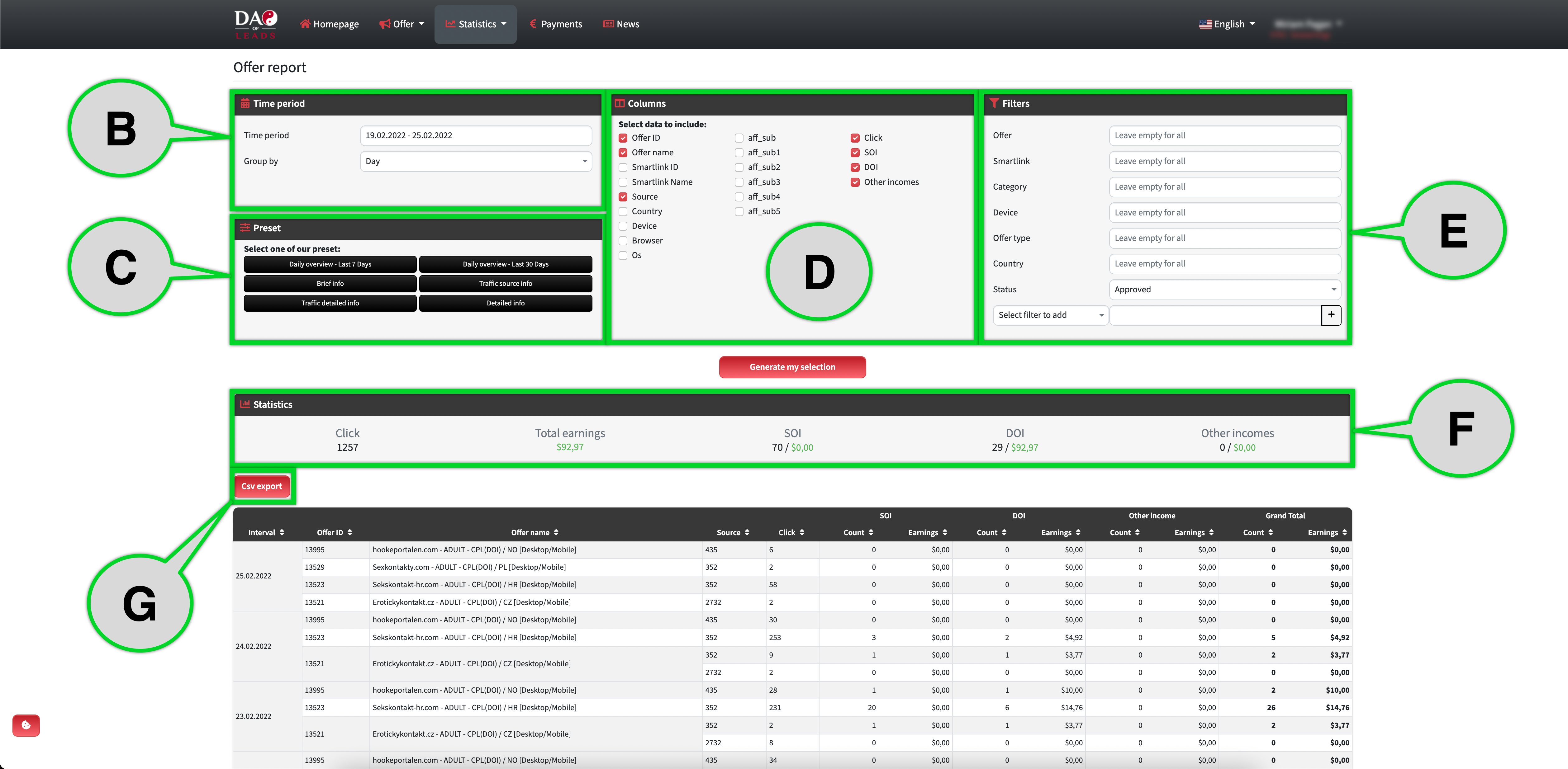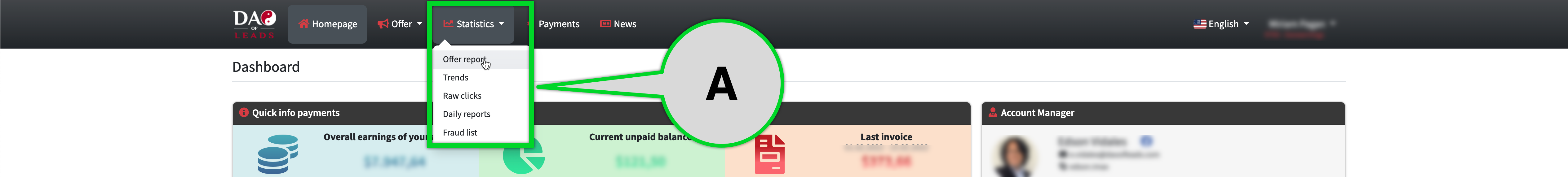 Point A - Go to"Statistics / Offer Report".